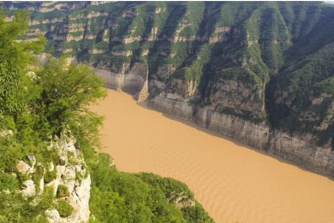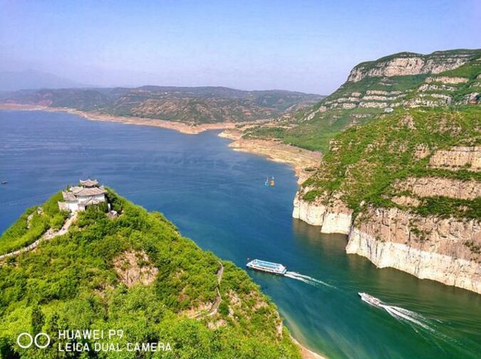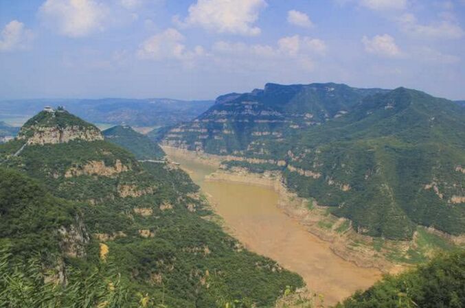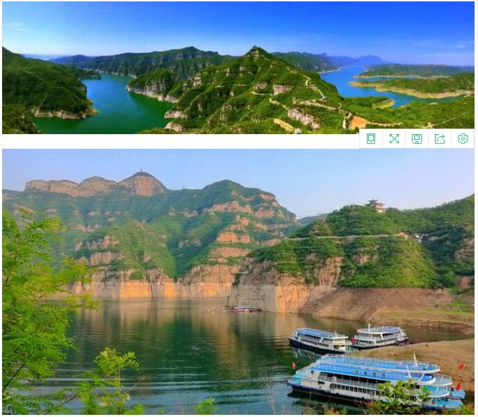 在黄河中下游分界点,河道穿行于河南省济源市黄河三峡的八里峡山谷之间,这里是黄河最后的一个峡谷段,至此黄河由山区进入平原的过渡河段。千百年来,黄河被称为中华民族的母亲河,经高原到山区,再由山区到平原,最终注入浩瀚的海洋;她孕育了中华文明和黄河文化。印象中的黄河是黄色的,因为黄河流经黄土高原时携带大量泥沙奔腾而去;但随着黄河干流上的一座座水库的建成,特别是世纪工程小浪底水利枢纽建成后,黄河中的泥沙得到了良好的、可控的调节。位于小浪底上游20公里处的黄河三峡也形成了一幅清水黄河、高峡平湖的美丽画卷!正如下图:清水黄河的颜色甚是漂亮