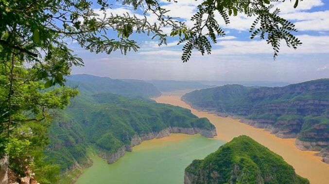 随着季节的变化,夏季小浪底库区要进行调水调沙,为即将到来的上游洪峰腾库容,黄河的颜色也有了变化,由湛蓝变为了黄色,在八里峡与孤山峡交叉口,黄河干流的水已经变为黄色,但支流的水依然清澈湛蓝,在变化的过程中形成了一半黄、一半清的神奇景象: